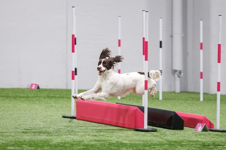 Hilla kisaa agilityä hyppyradoilla pikkumaxi3 -luokassa, josta 2 SERT -H.